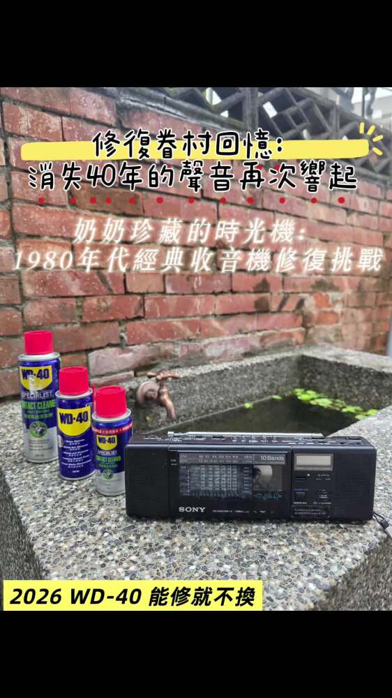 這台超過 40 年的 Sony WA-8800 收音機因受潮導致按鈕失靈、電池彈片鏽蝕。我先用 WD-40 精密電子清潔劑 清除電路板氧化物,並修復生鏽彈片,讓消失 40 年的家族聲音再次響起。