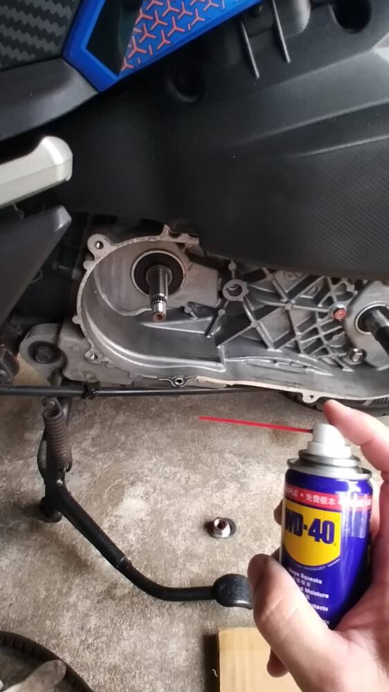 更換機車傳動前噴上WD-40進行防鏽在安裝上傳動